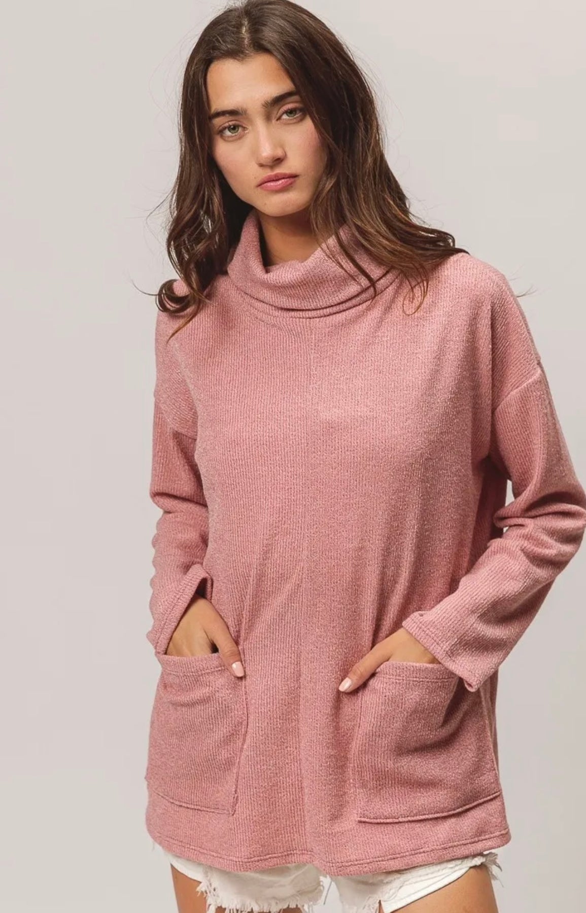 The Piper Rib Double Pocket Turtle Neck Top is a stylish and functional piece that features a cozy turtle neck design and ribbed texture. The double pockets add a touch of utility and interest to the top, perfect for storing small items or adding a casual twist to your outfit. This top is versatile and can be dressed up or down depending on the occasion. Pair it with jeans or trousers for a chic and comfortable look that is perfect for cooler weather.